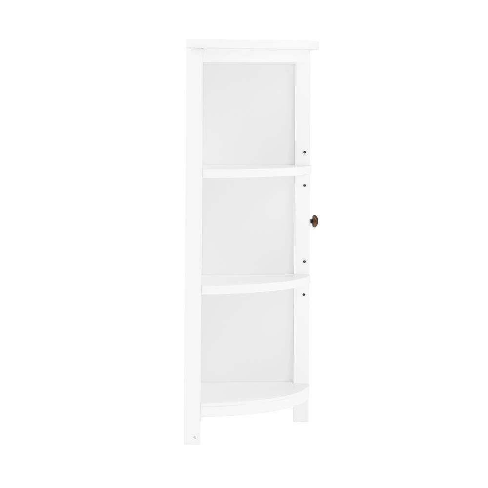 This collection brings space saving storage to your bathroom. The classic design compliments almost any bathroom decor. Wood construction with a white, painted finish, these pieces are designed for both style and functionality. Store toiletries, stacked washcloths, rolled towels or anything you need to keep organized. This 27 in. wide stand-alone storage cabinet with shelving features two adjustable shelves inside the cabinet and two adjustable shelves on the side of the cabinet. This bath cabinet is perfect for your powder room, guest bath or master suite. Bath collection is moisture resistant.