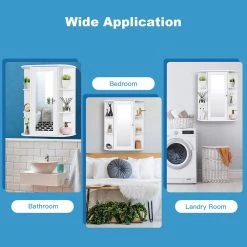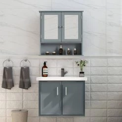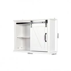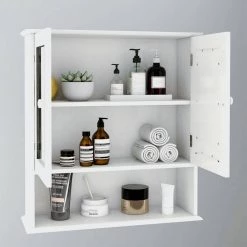 Basicwise Modern Long Bathroom Wall Mounted Cabinet in White