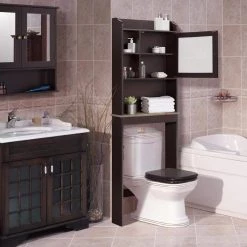 Hooseng Shccout 23.25 in. W x 7.5 in. D x 69 in. H Over-the-Toilet Wall Cabinet in Espresso