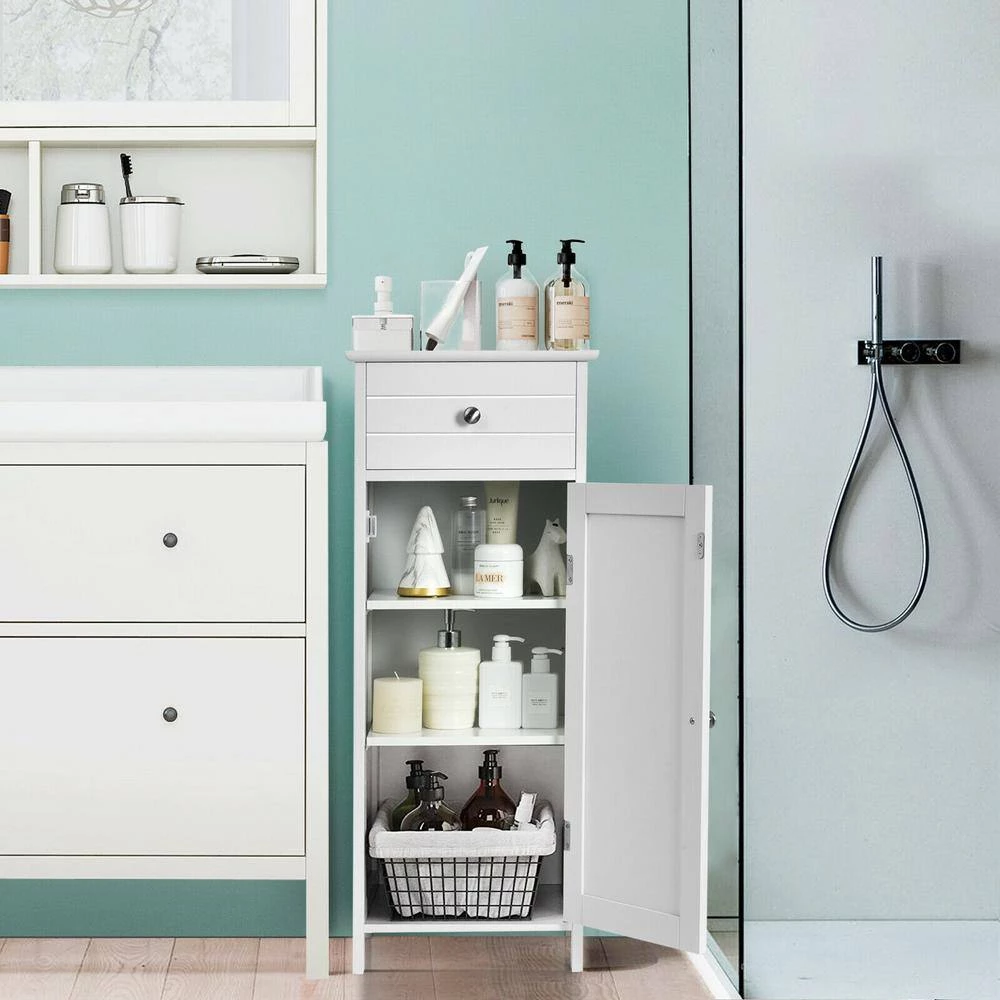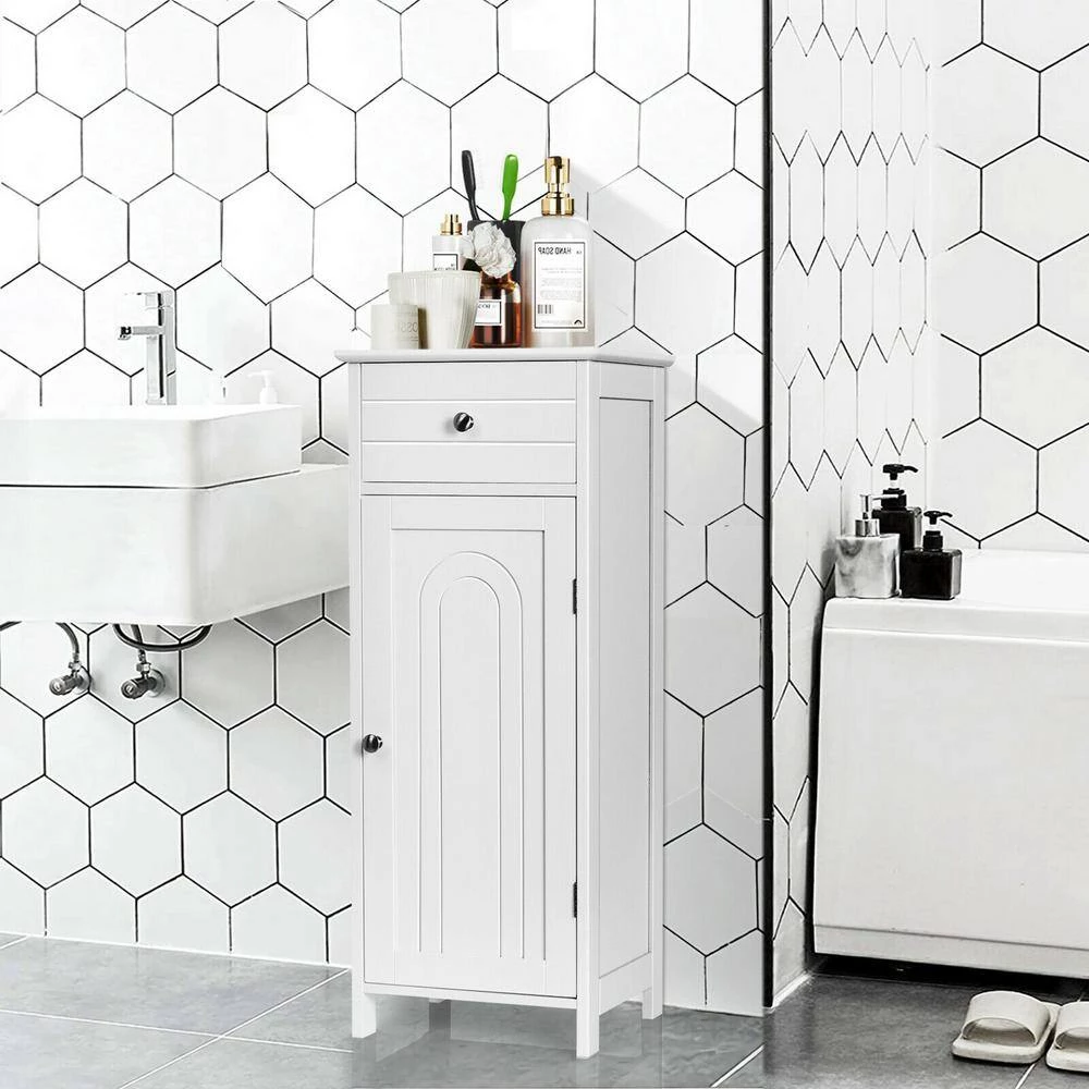 - Large storage space: this bathroom cabinet occupies a small space and effectively uses the vertical space, the top can be used to place photo frames and some decorations, the drawer and single-door cabinet provide ample storage for your toiletries, cosmetics, books, etc., while preventing dust from entering
