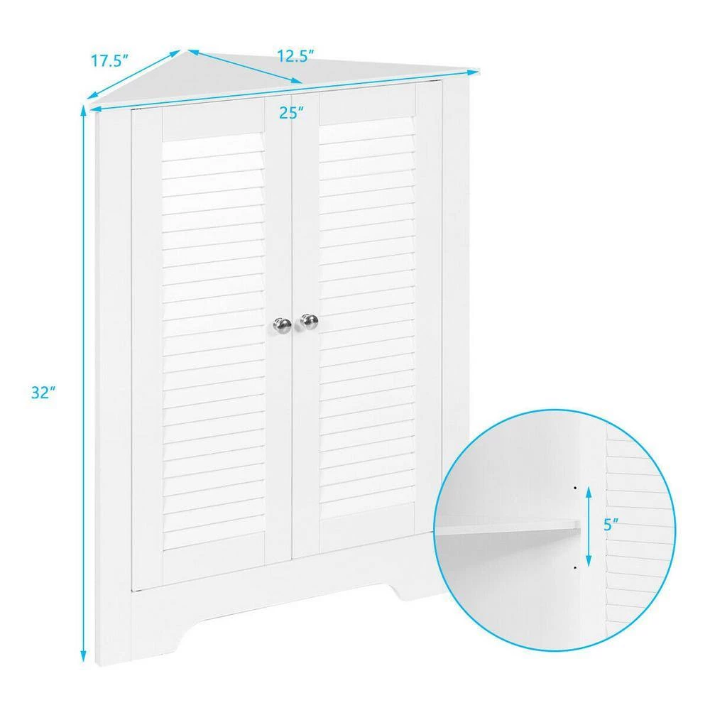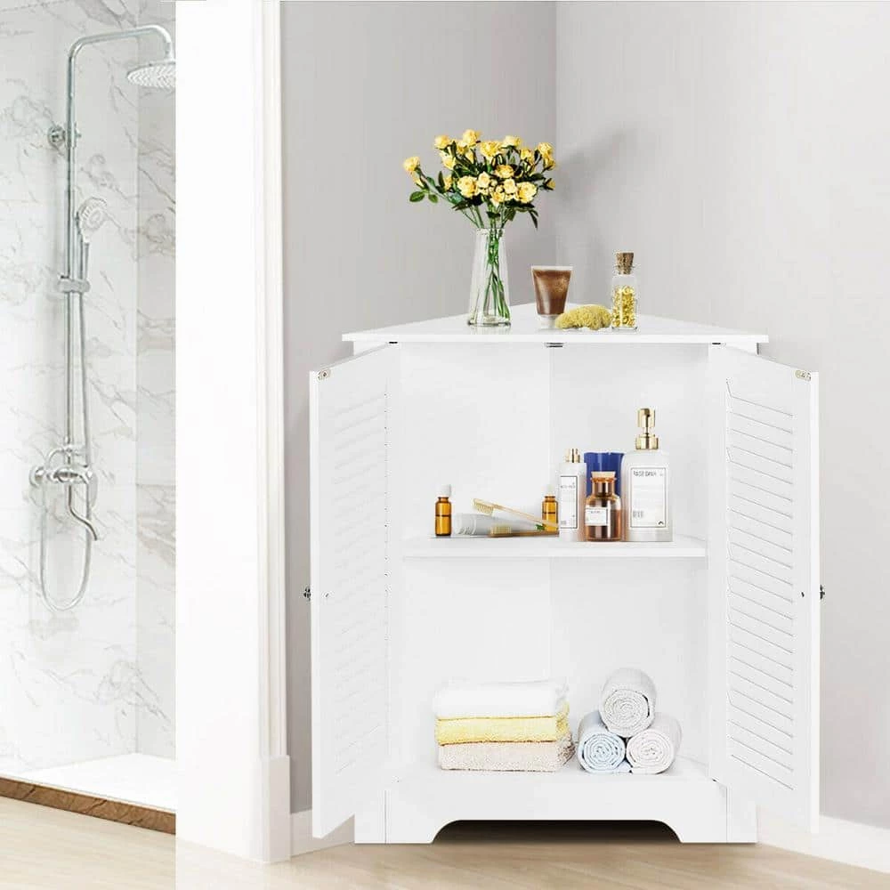Featuring the traditional shutter doors, this storage cabinet not only guarantees the good ventilation but effectively stores and classifies your toiletries and towels in order. Made of P2 standard MDF, this classic floor cabinet can hold up to 22 lbs. and bring endless charm and country inspired style to your interior space. One fixed shelf and the adjustable shelves included is designed for flexible storage options, perfect to fit squarely in the corner of a room for added convenience.