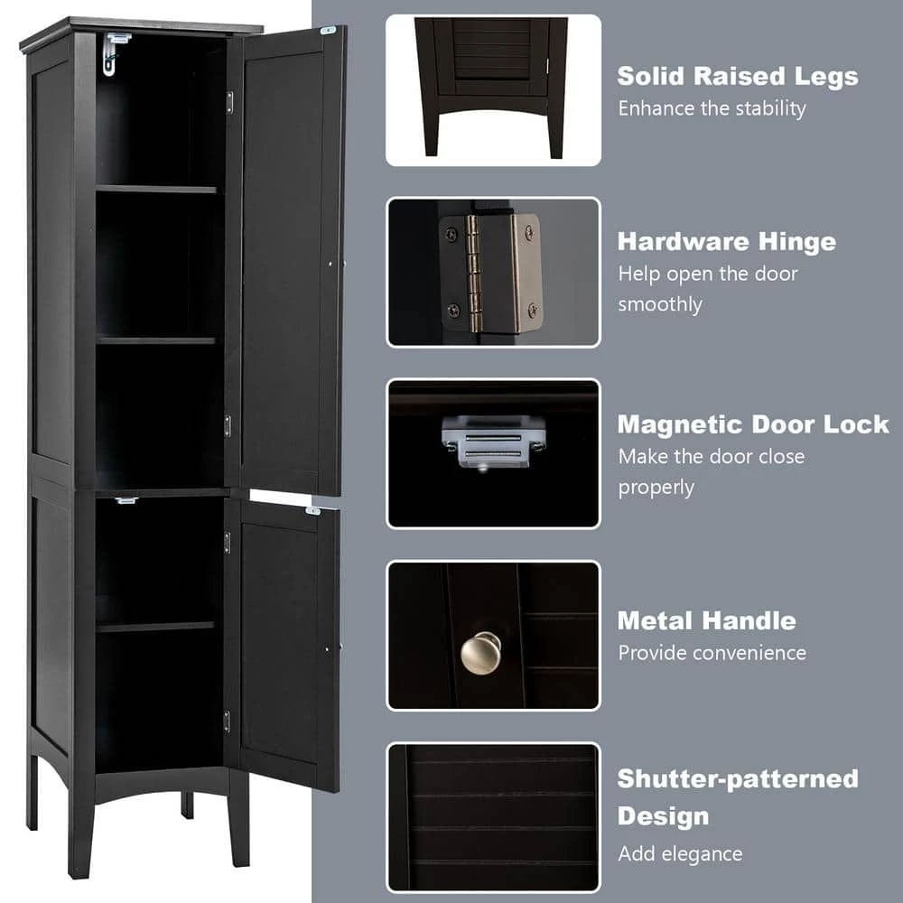 - Humane-designed details: this tall bathroom cabinet is built on four raised feet, ensuring that your items will be stored off the ground and away from possible water damage, equipped with metal handles and magnetic buckles, the tall cabinet provides you convenience to open the door smoothly while close the door firmly