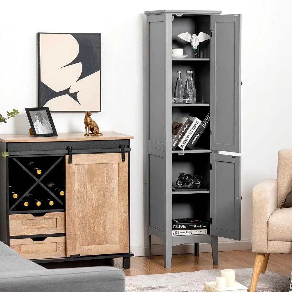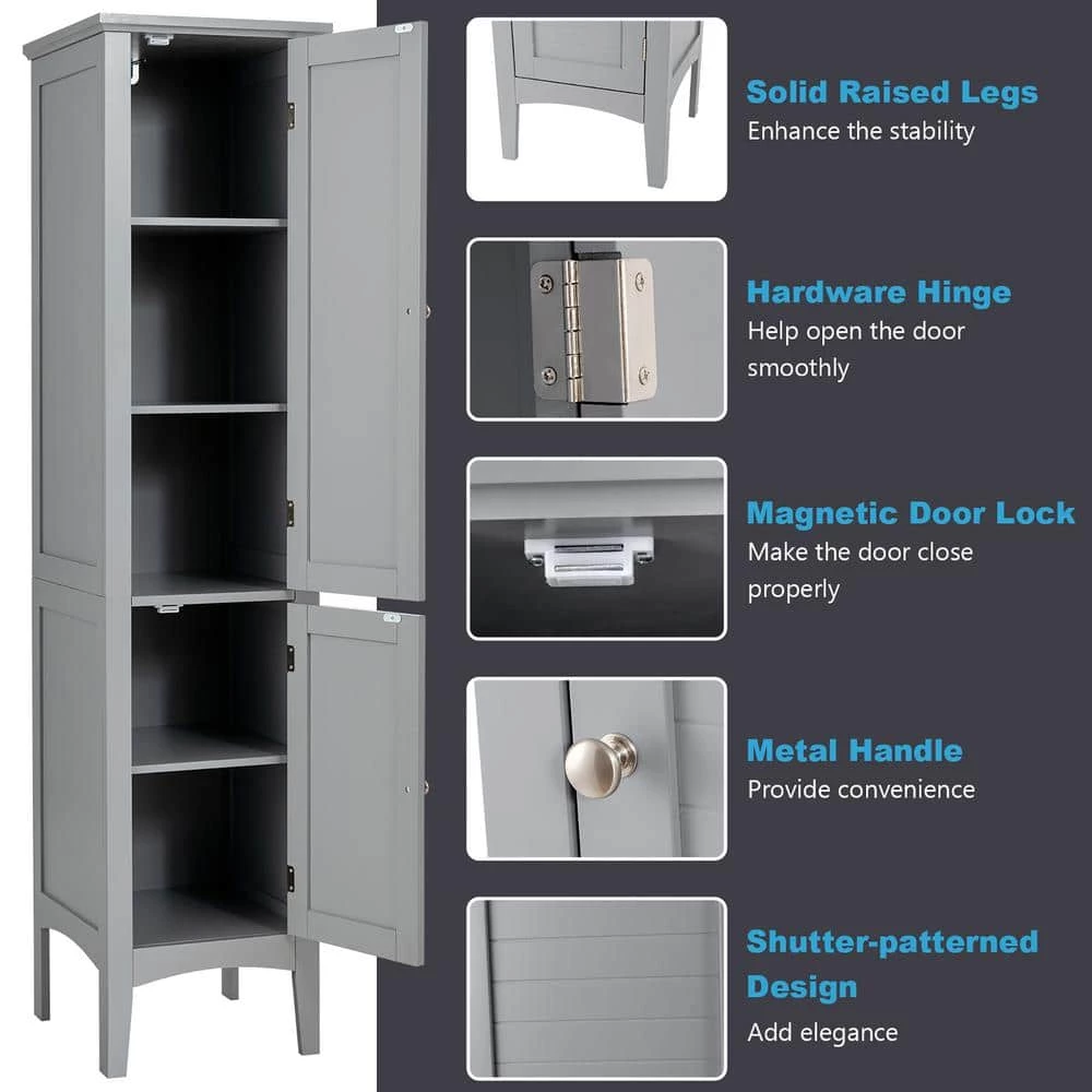 - Humane-designed details: this tall bathroom cabinet is built on four raised feet, ensuring that your items will be stored off the ground and away from possible water damage, equipped with metal handles and magnetic buckles, the tall cabinet provides you convenience to open the door smoothly while close the door firmly