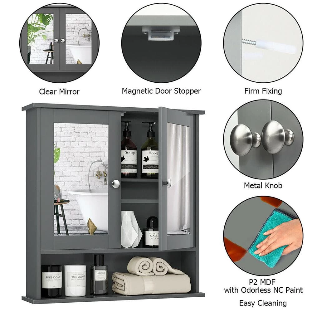 - Double doors with mirrors: this cabinet comes with 2-doors that adopt a magnetic door catch, keeping the door closed tightly and safely when not in use, high-definition mirrors on both doors offer convenience for your daily makeup or shaving