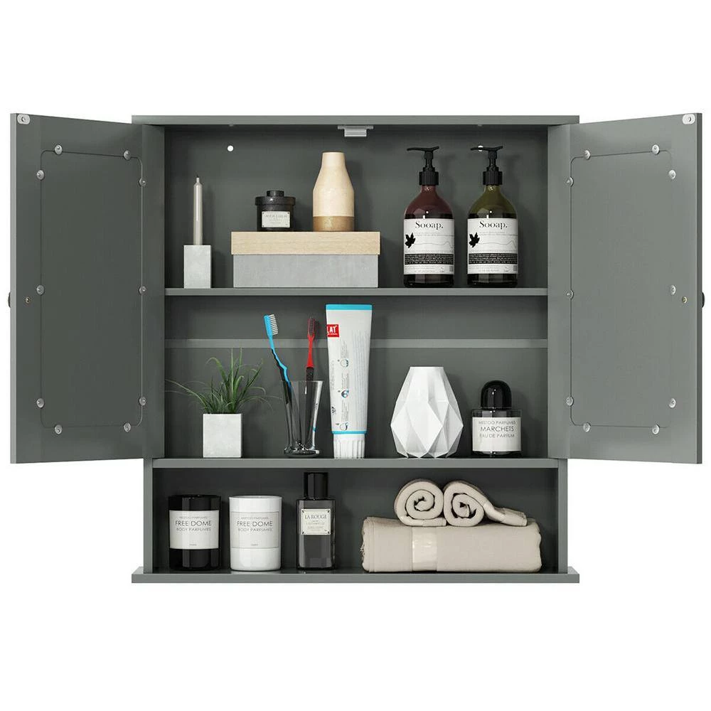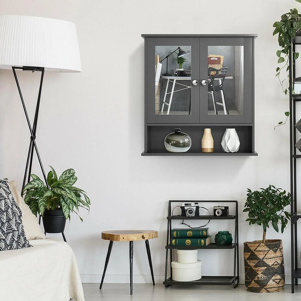 Our wall cabinet is a space saver for the living room, bathroom, etc. With an open shelf and large interior space, this cabinet can hold and organize lots of items. Inner adjustable shelf meets your different needs for storage. Thanks to the magnetic door catch, doors can be closed tightly and better protect your items. For your convenience, both of them have a mirror for daily dressing. Besides, the MDF and hardware adopted are premium, water-resistant, and durable to serve a long time.