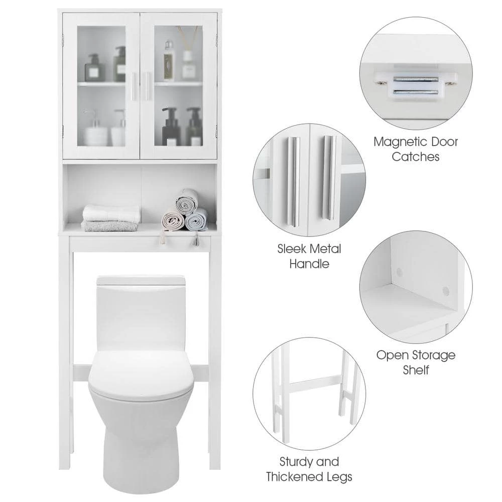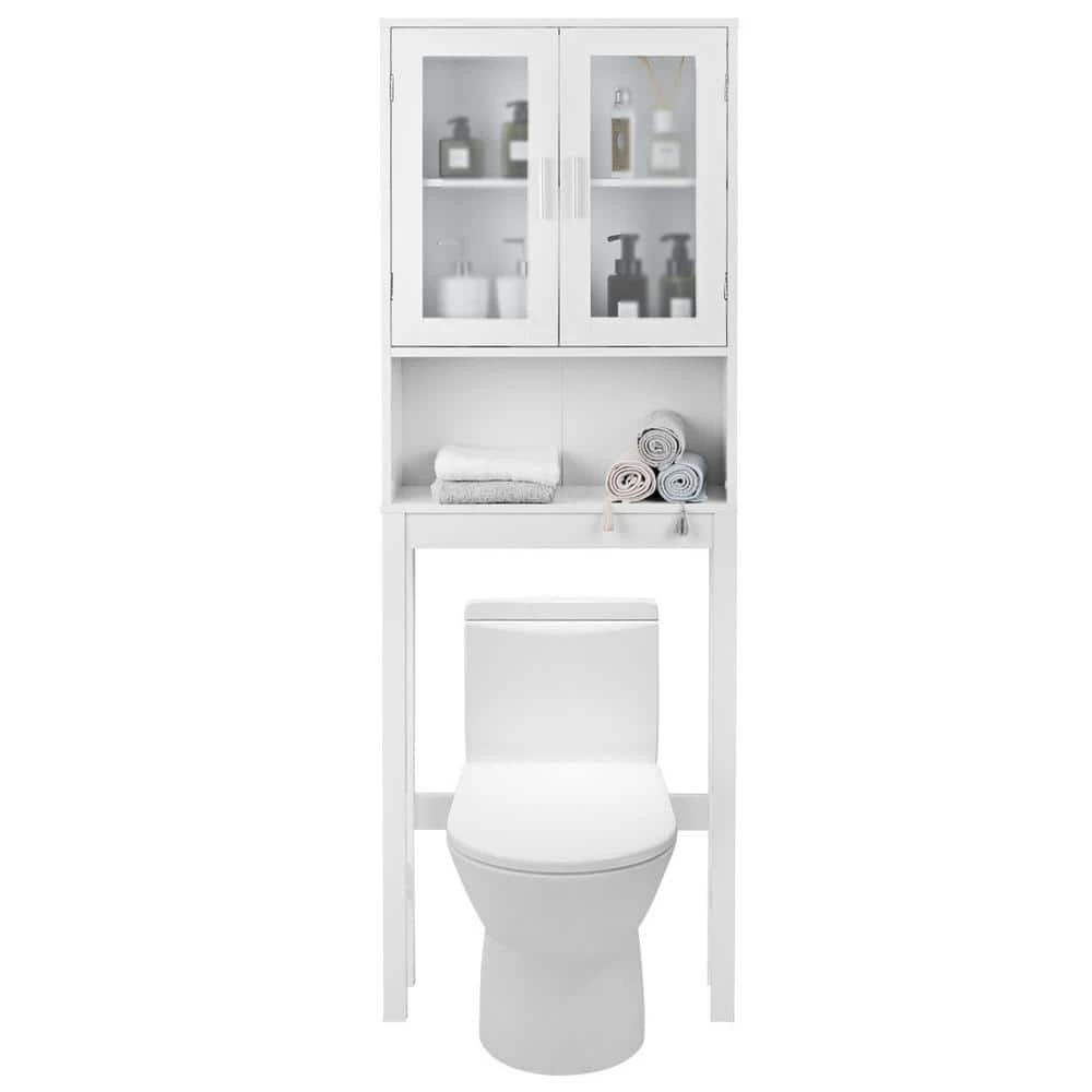 Our brand new clever and versatile bathroom Space saver allows you to utilize extra space for all your bathroom storage needs. Place this white bathroom space saver around the toilet and add bathroom storage space quickly and easily. Features an two-door cabinet and an open shelf for easy access storage. The cabinet provides excellent storage solutions for bathrooms with limited space. This bathroom space saver features sturdy MDF construction, and its white finish ensures that it will match and accent any existing decor. It is a free standing furniture piece, which conveniently fits over standard toilet tanks and adds easy storage for roll paper and other bathroom necessities. Don’t hesitate to buy it.