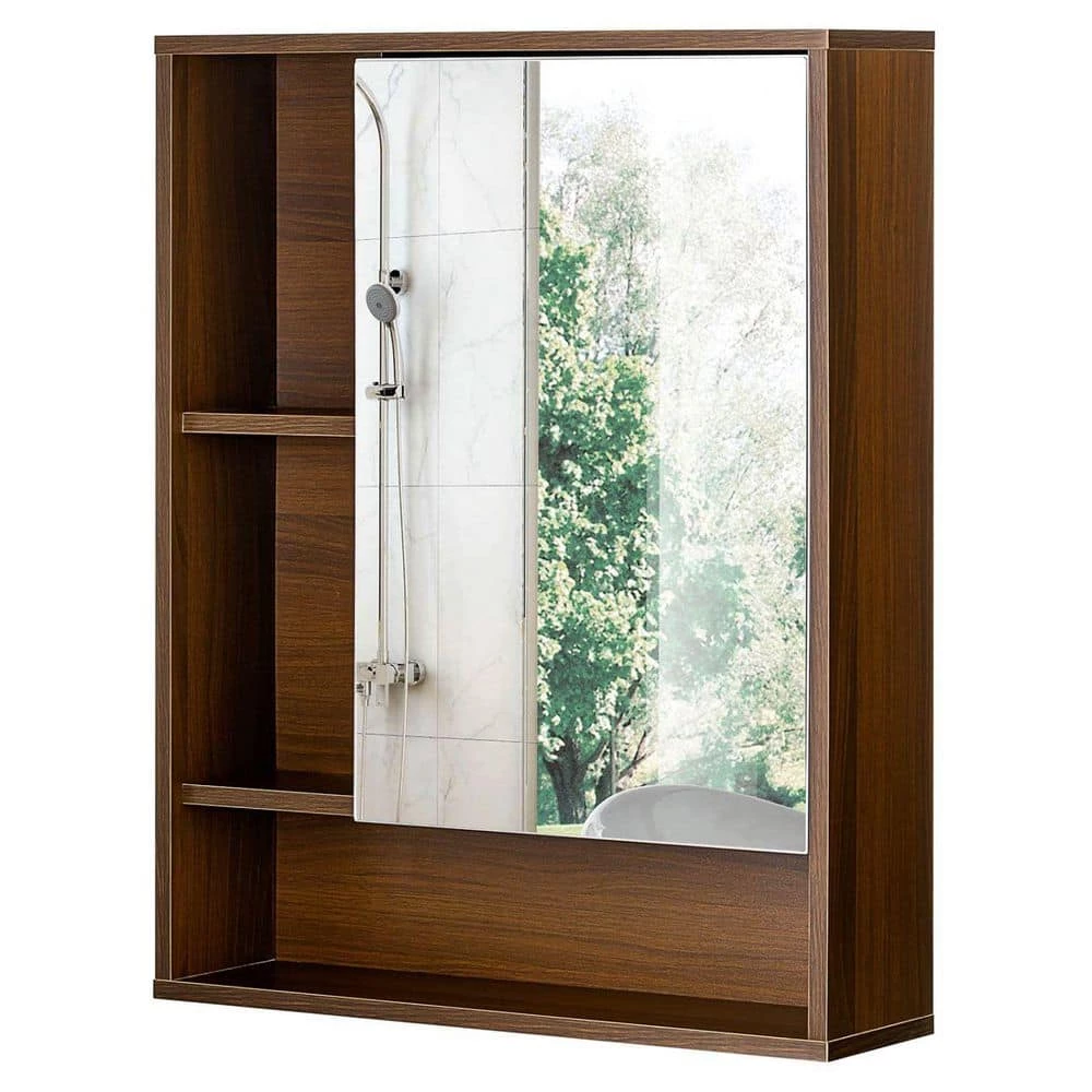 The bathroom mirror cabinet offers both hidden storage and visual shelving for holding a combination of medicines, toiletries, and even knickknacks, which will make your bathroom looks neat and pristine.This bathroom wall cabinet features a single mirror for your everyday makeup or shaving. It is a blend of mirror and cupboard which save your space and money as well.Crafted of premium MDF material,bathroom cabinet wall mounted ‘s rustic finish exudes a simple yet timeless piece of furniture. Woody material is full of texture. Bring a natural look to your bath!