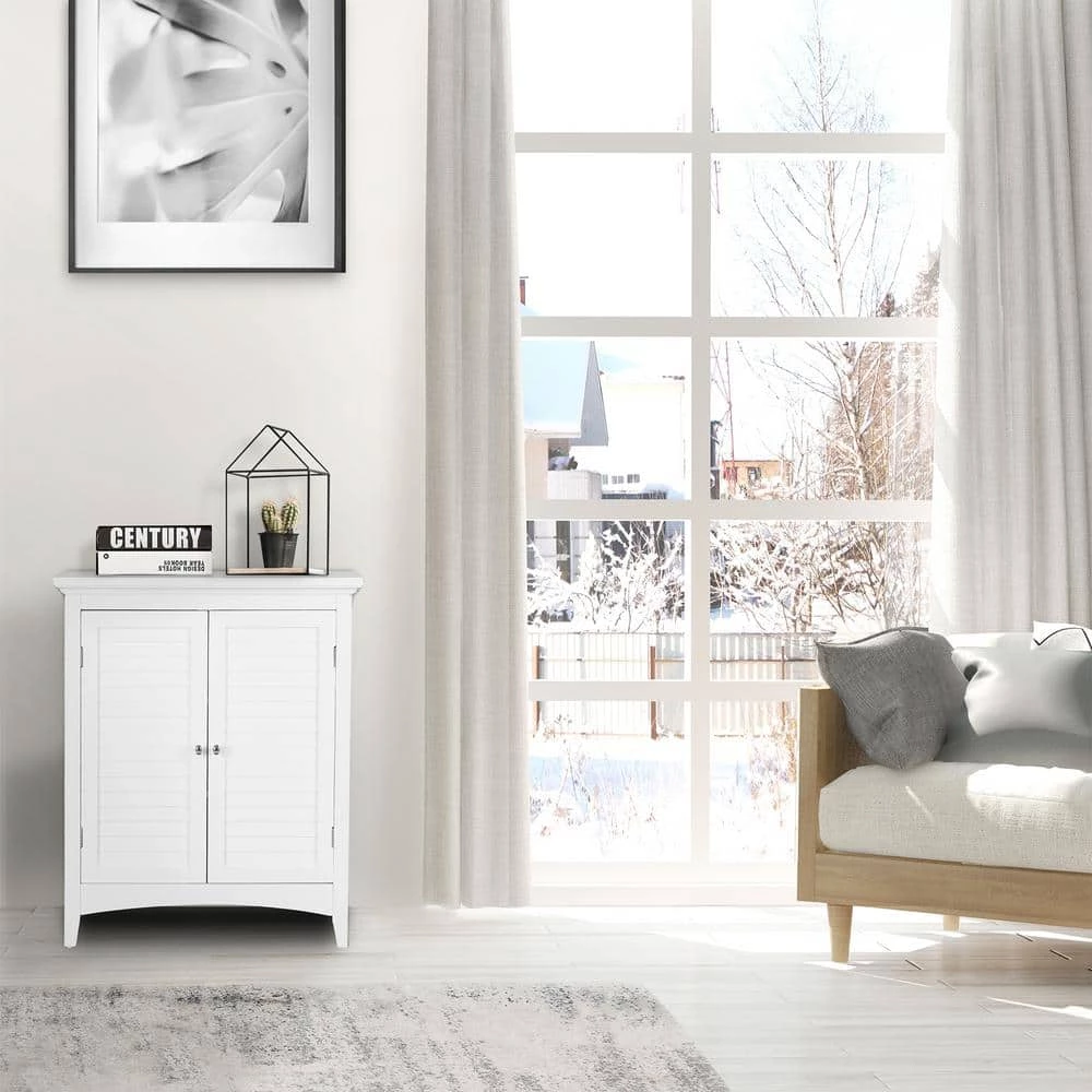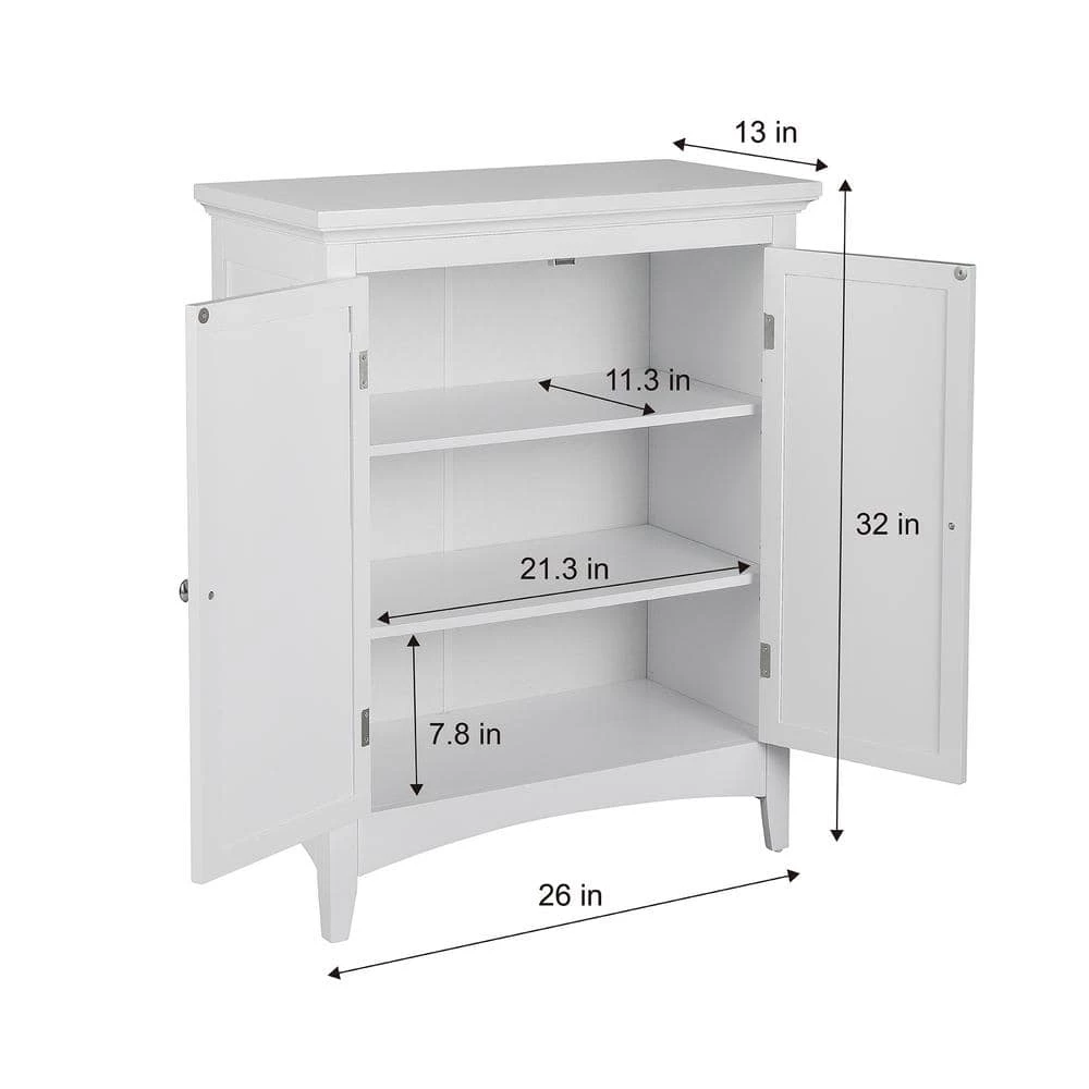 Upgrade your home storage while adding classic style with the Elegant Home Fashions Glancy Wooden Floor Cabinet with Shutter Doors. This decorative cabinet features a timeless white finish with a crown molded top and skirting, chrome-finished knobs, louvered doors, and shaker-style legs for a beautiful addition to your space. The included fixed shelf and an adjustable shelf make this cabinet functional and customizable to suit your storage needs. Constructed from durable engineered wood with included anti-tipping hardware, this storage unit is built to provide you with long-lasting organization. Easy, step-by-step instructions and all of the hardware needed for installation are included for quick assembly. Purchase this stylish floor cabinet alone or with other items from the Glancy collection for a cohesive, updated look. The Elegant Home Fashions Glancy Wooden Floor Cabinet with Shutter Doors measures 26″ x 13″ x 32″ to provide accessible storage without taking up too much space in your living area or bathroom. An affordable extravagance. Elegant Home Fashions has been the nation’s foremost manufacturer of bathroom accent furniture and bathroom accessories among the United States. Their customers include some of America’s finest and most prestigious retailers, department stores, and discount retail chains. Elegant Home Fashions products have traveled the globe to focus on giving their consumers, the best quality and design for their bathroom decor.