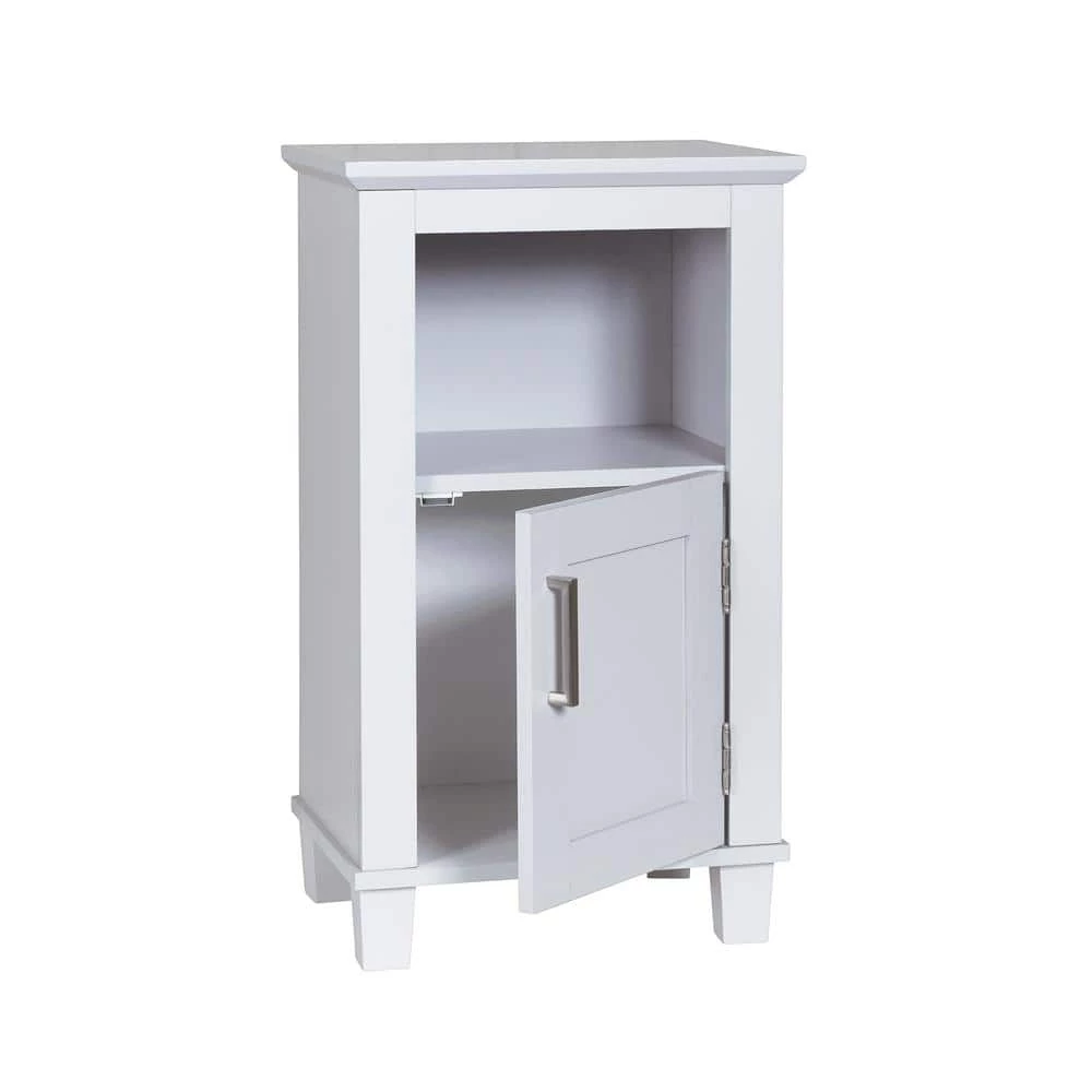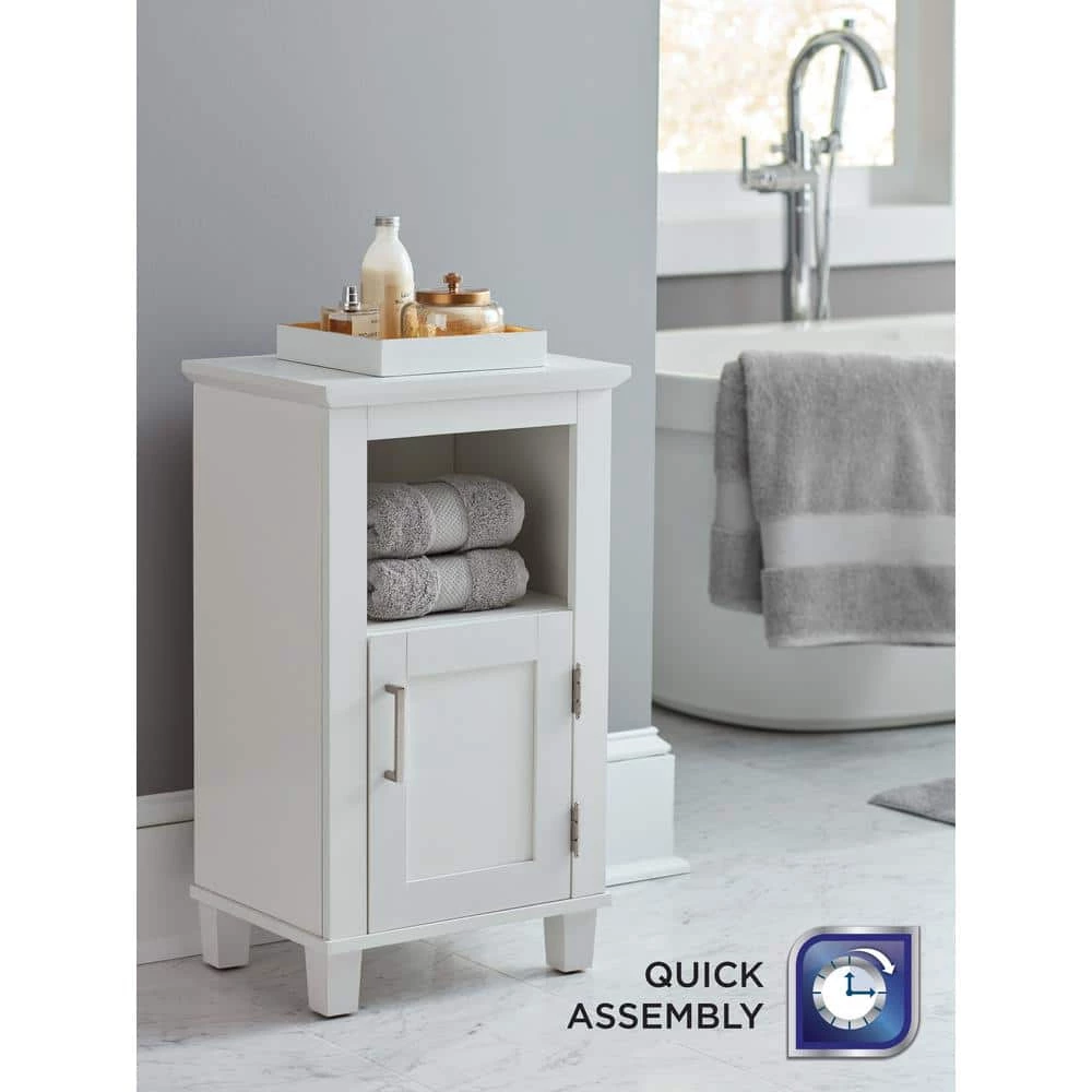 The Glacier Bay Shaker Style Floor Cabinet has a sleek modern design that is timeless and classic, while creating valuable storage in a compact space. Keep toiletries hidden from view by using the concealed storage behind the cabinet’s door. Use the open shelf and cabinet top to store other bath items or to display decorative accessories. The cabinet is easy to assemble.
