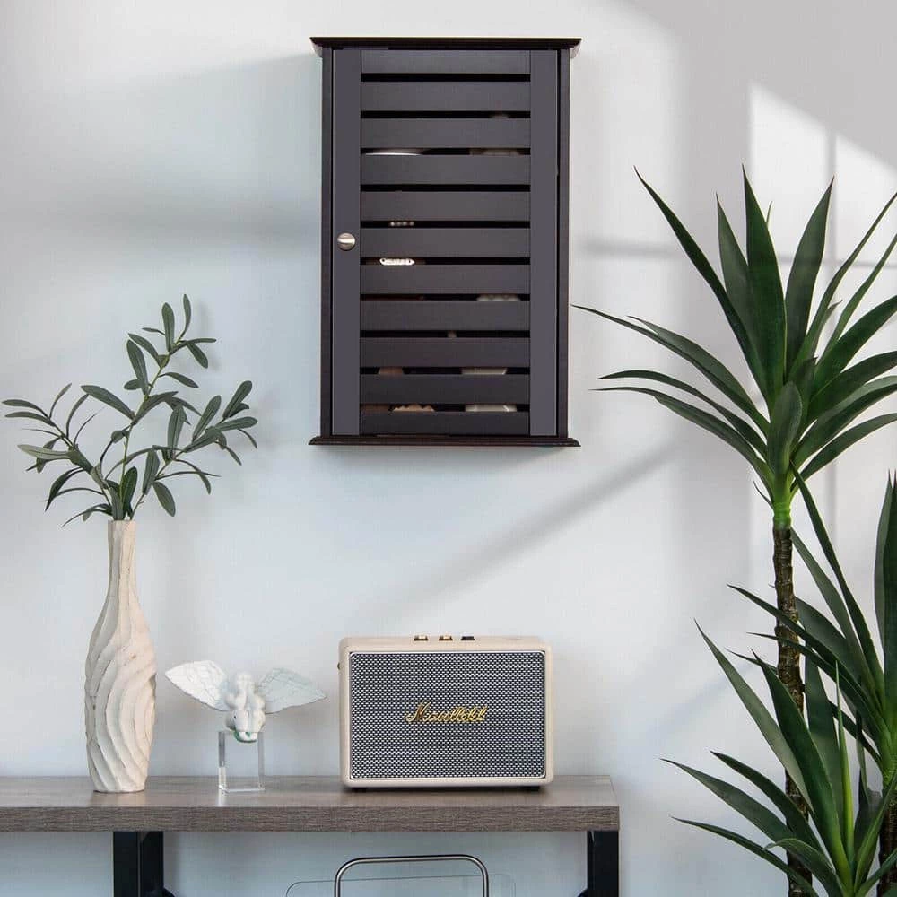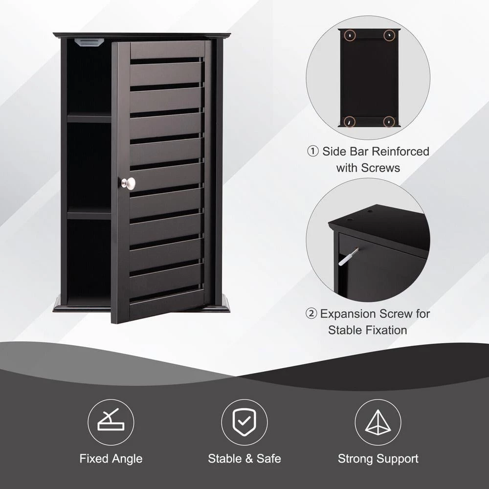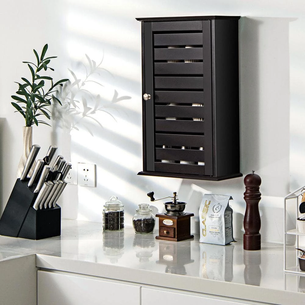 The simple and modern style of our wall cabinet can show your elegant temperament and enhance your quality of life. It can not only be placed in the kitchen, bathroom, but also in the living room and hallway to help you save floor space and store items. The louvered door design makes the cabinet look simple and beautiful and promotes air circulation inside the cabinet to reduce odor. Both shelves are thickened and can be adjusted in height, which means that the space inside can be freely split. The back panel is screwed so that the entire cabinet does not easily shake and fall. Elegant metal door handles make opening and closing easy.