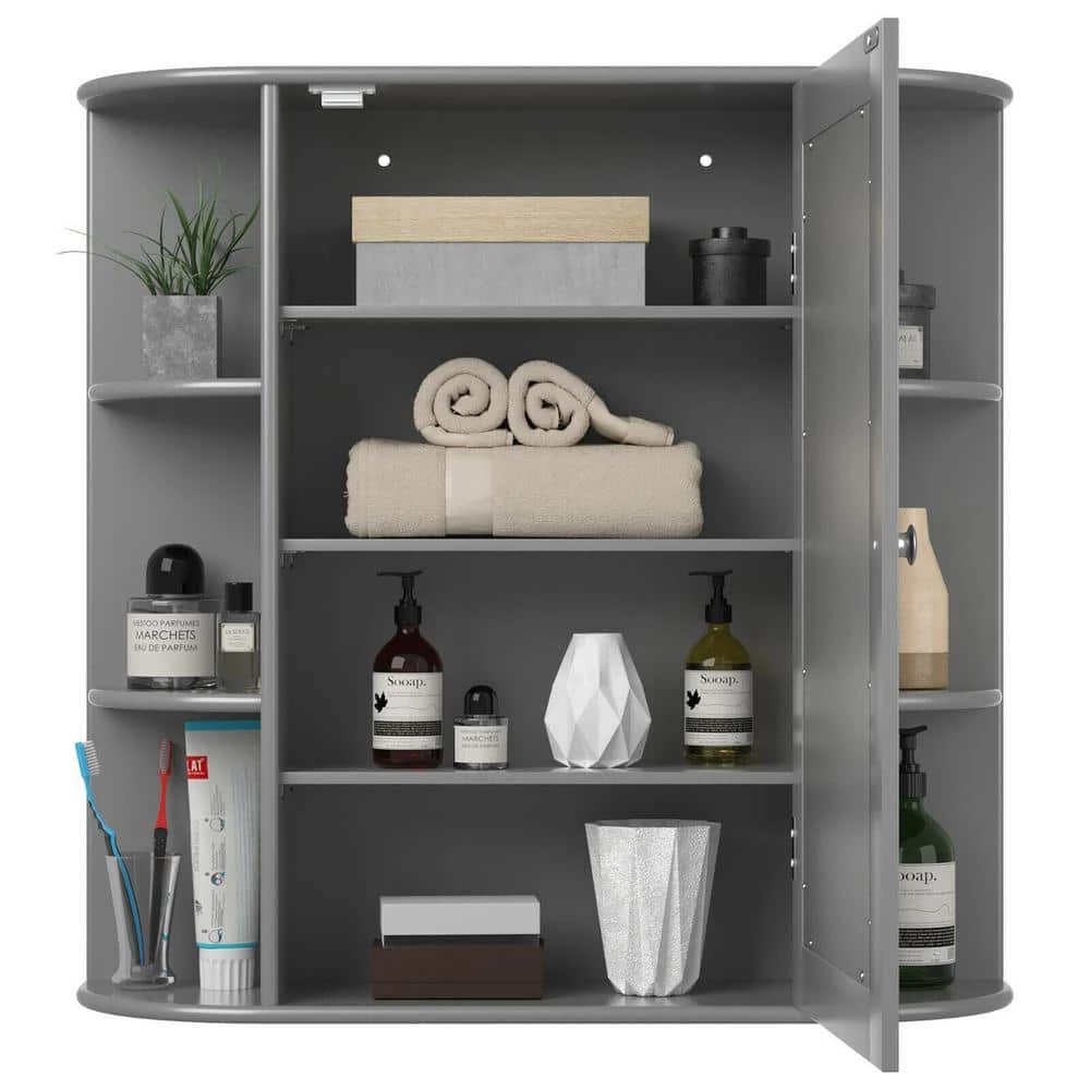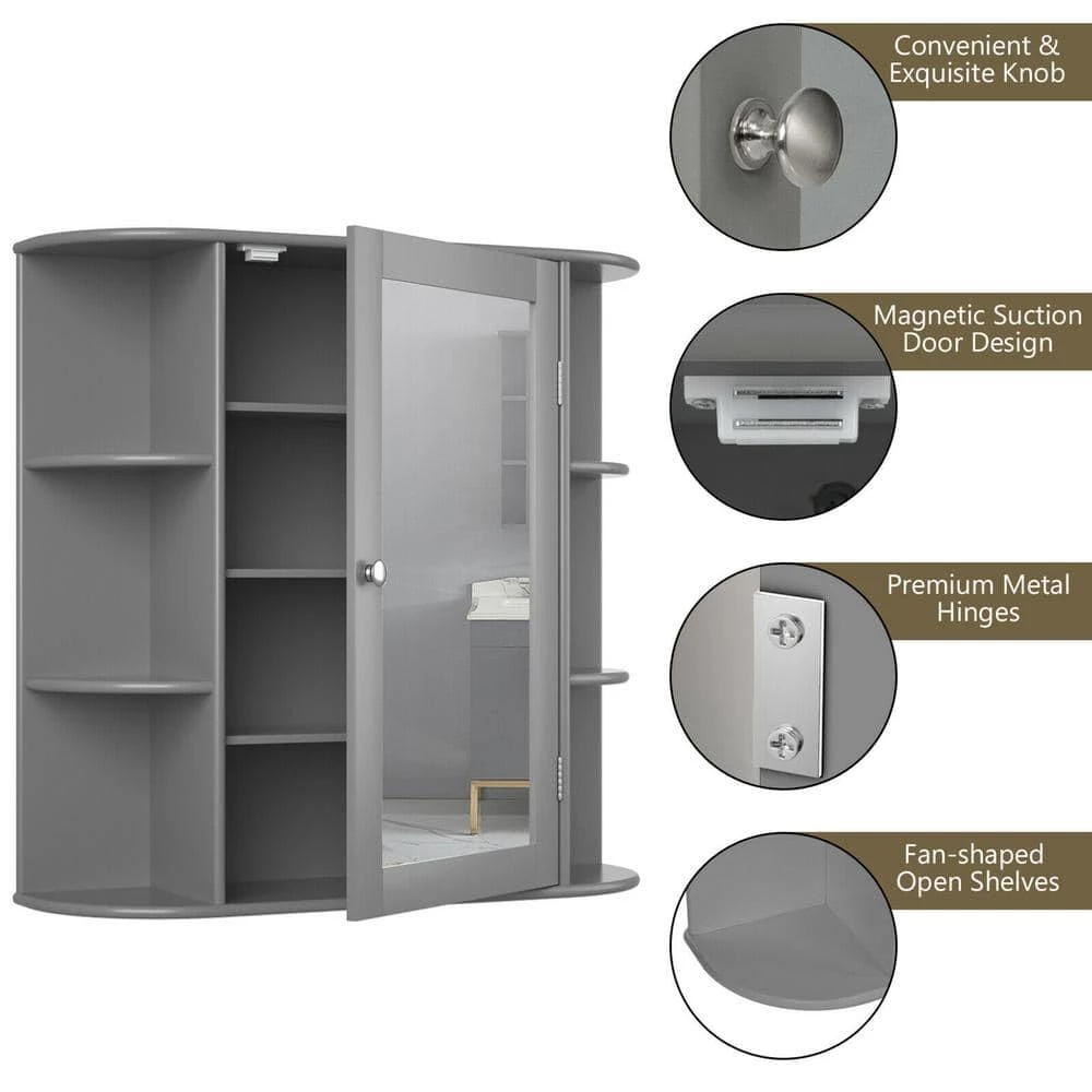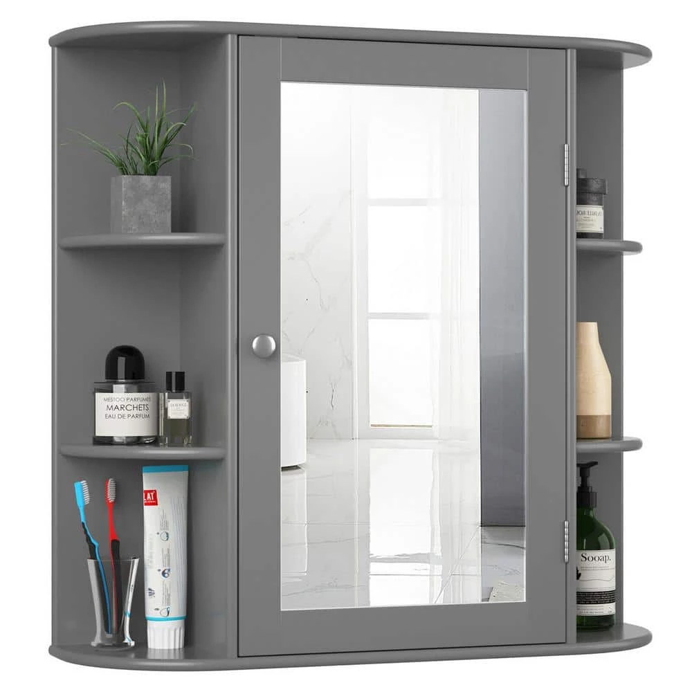 Featuring your bathroom with a fresh of elegancy with our mirrored wall cabinet. Made of premium density board, this wall-mounted cabinet with a mirror is durable and suitable for bathroom, living room and any other needed place. Vertical mounting arrangement helps you save floor space, while 10 shelves give you enough space for daily necessaries. The knob makes open and close easier. Blending with any home decor, this medicine cabinet is easy to install and maintain. After receiving the parcel, the cabinet is easy to install by yourself. With smooth surface, the cabinet is easy to clean with a damp cloth. Get your mirror and cabinet altogether with our product.