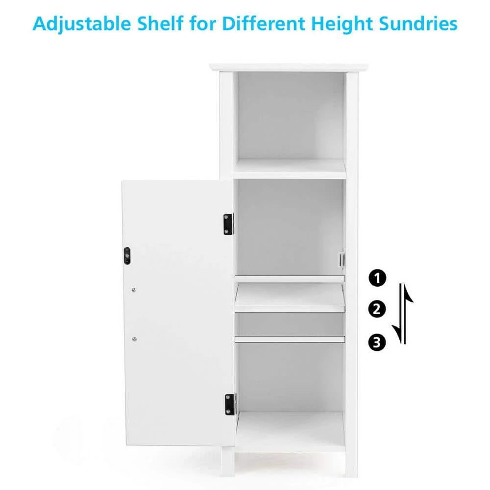 Our simple and stylish storage cabinet. It is made of environmentally friendly wooden board material and High quality paint,which is waterproof and moisture-proof. Quality materials give you a perfect cabinet for durability and long life. A large storage space can help you better classify your items.The open top compartment of the cabinet can be used to hold some items for daily use, and your extra items can be placed behind the door. The storage cabinet has three height-adjustable shelves to meet your storage needs for items of different heights.