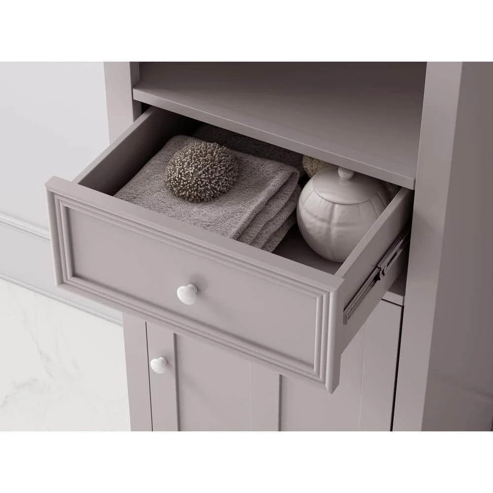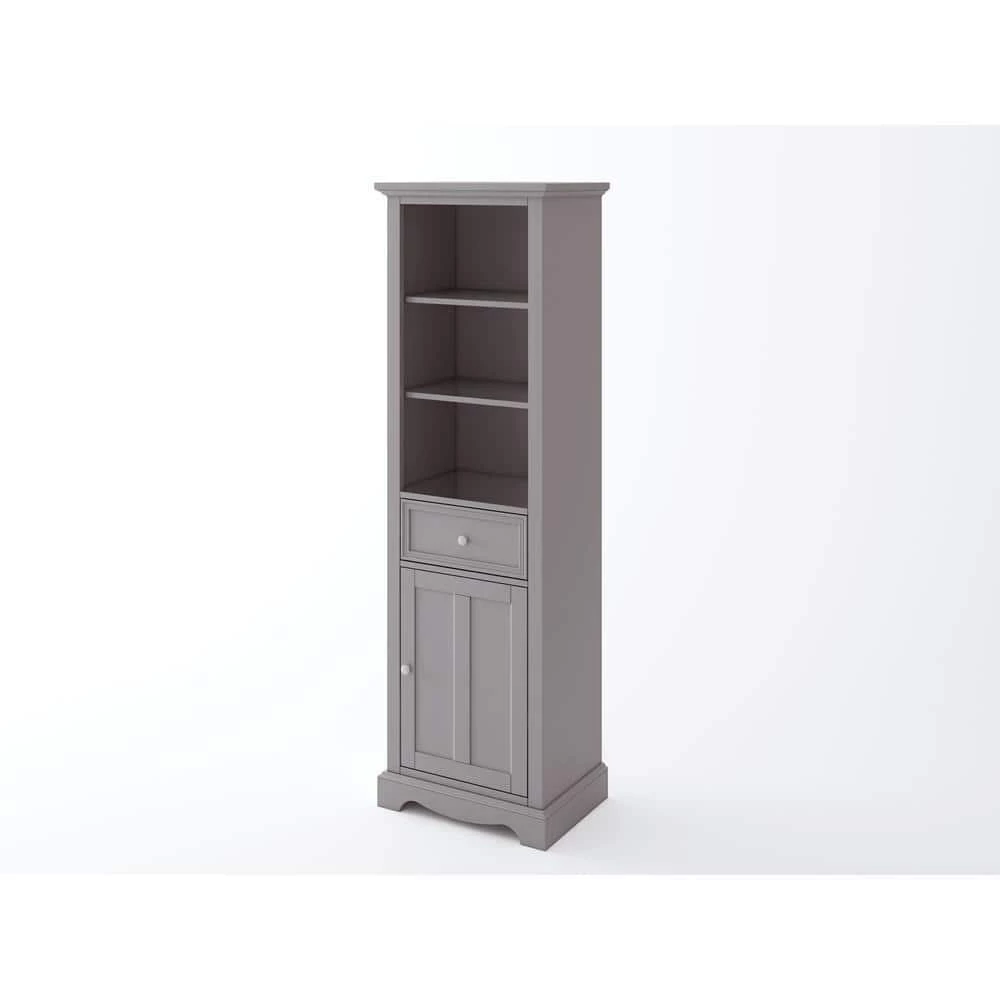 Refine your home with this Fremont 20 in. W x 14 in. D x 65 in. H Linen Cabinet in Grey. It features three open shelves, two of which are adjustable shelves. The cottage, transitional style easily complements your space.