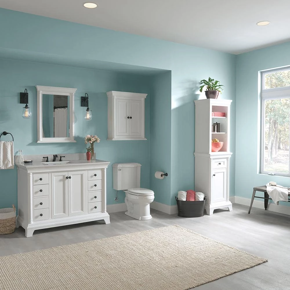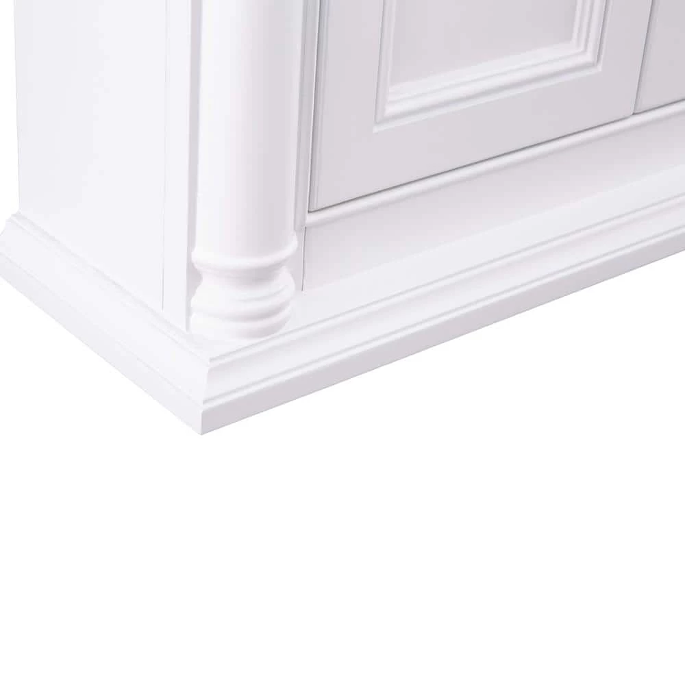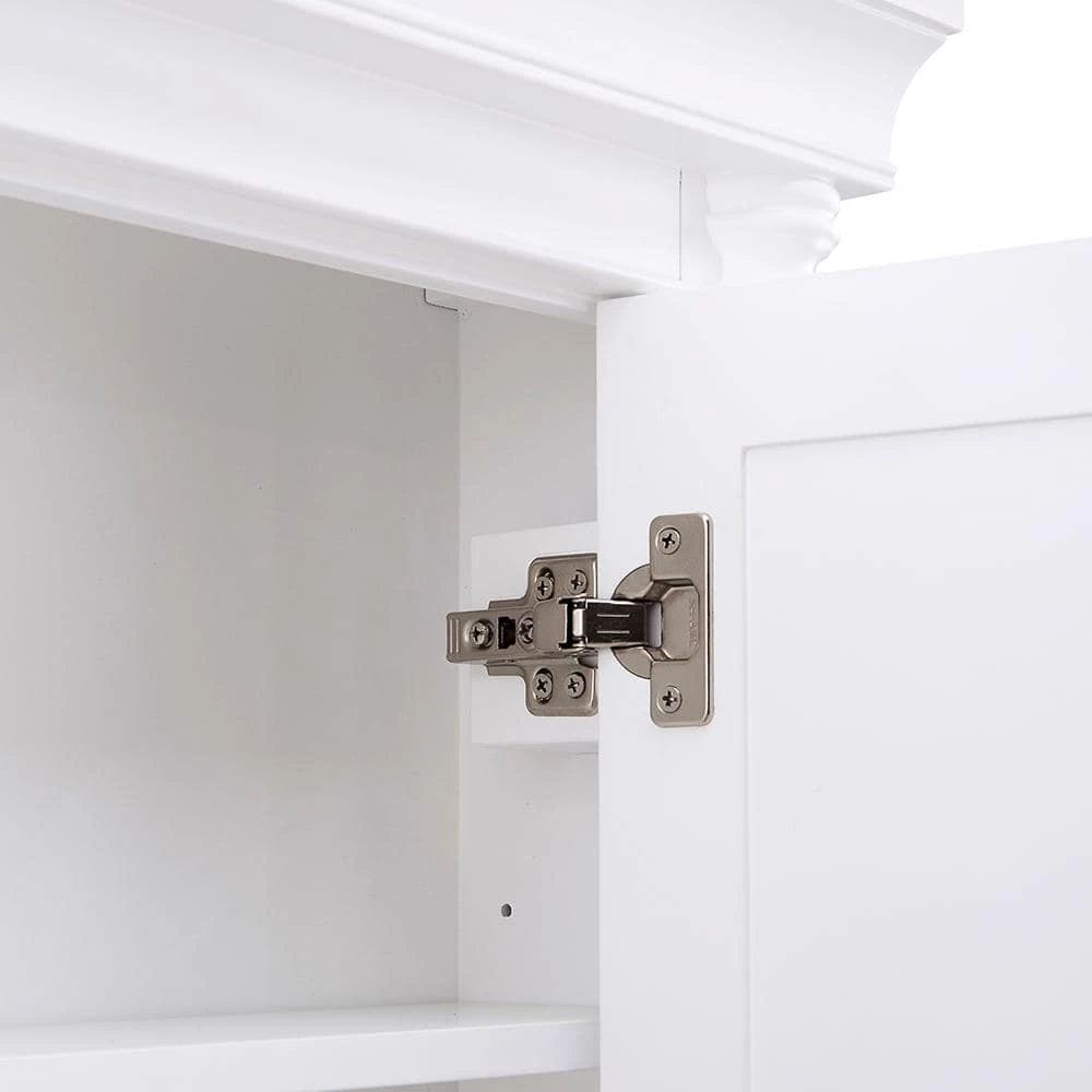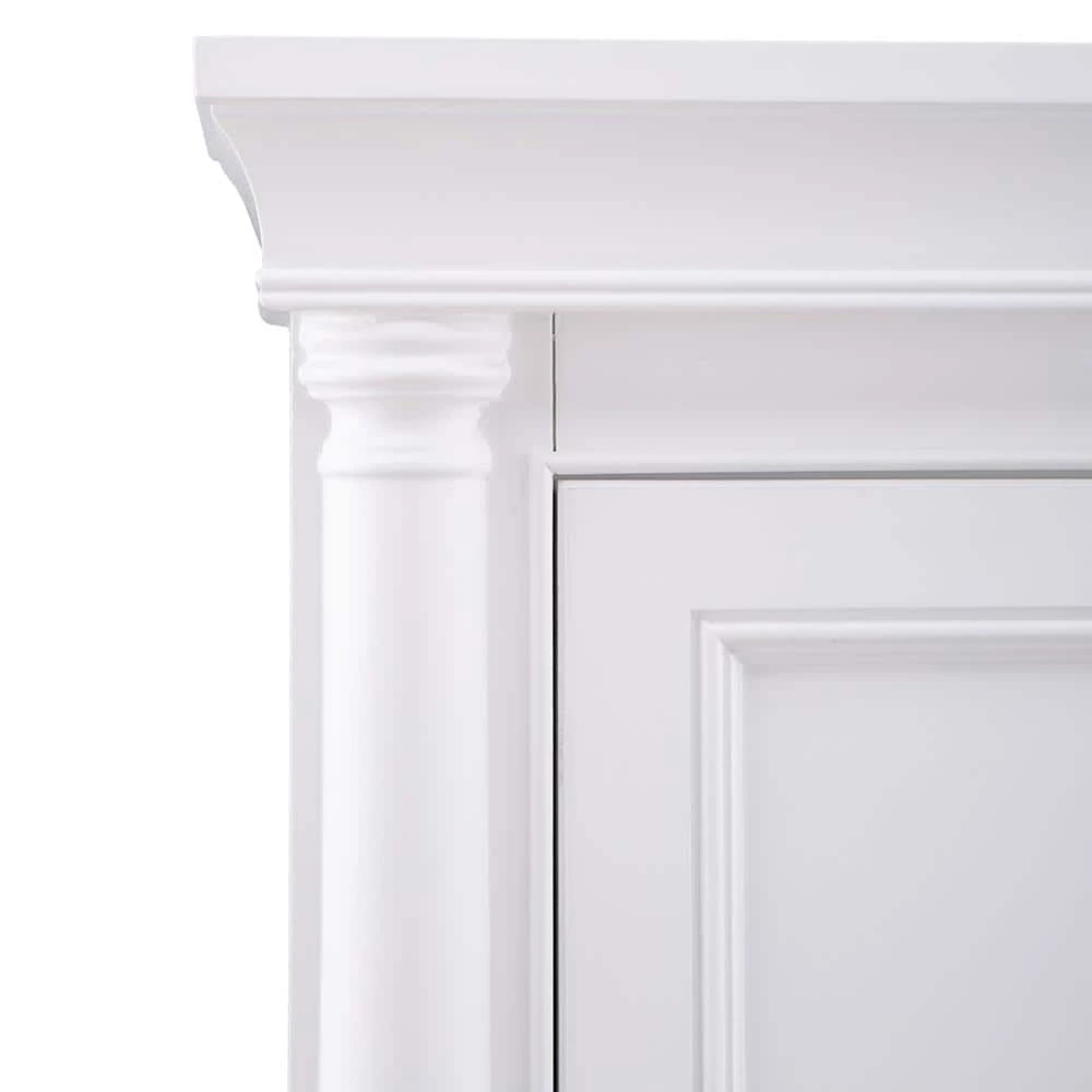 With a pristine White finish, the Strousse wall cabinet makes an upscale, elegant impression and a perfect complement to the Strousse vanity. Featuring 2 interior adjustable shelves, you will keep bath necessities neatly tucked away behind a set of slow-closing doors. Dark Pewter round knobs give sharp contrast, while stately columns round out this furniture-style piece. Create a complete bathroom that leaves visitors envious with this cabinet and all its coordinating pieces in the Strousse collection.