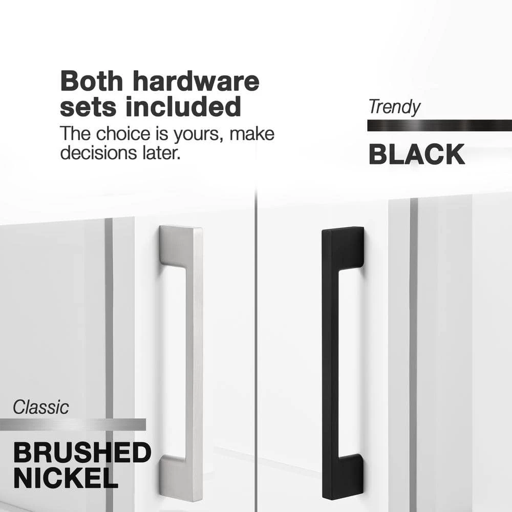 - 2 sets of hardware included (matte black and brushed nickel)