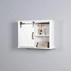 Unbranded 21.7 in. W x 7.9 in. D x 27.6 in. H White Bathroom Storage Wall Cabinet with Sliding Door
