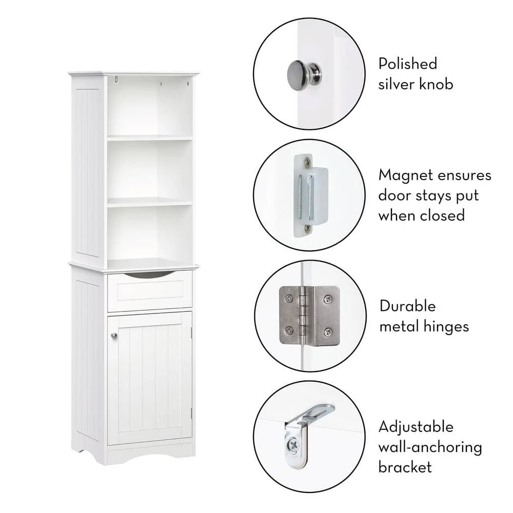 Show off style and your bathroom essentials with this tall multi-purpose cabinet from RiverRidge Home Ashland Collection – Tall Cabinet. Traditional design complements many styles of decor. Available in white and gray finish.