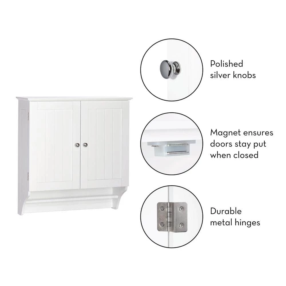 Hide toiletries and other bathroom items behind cabinet doors for a clean presentation with the RiverRidge Home Ashland Collection-Two-Door Wall Cabinet. Traditional design complements many styles of decor. Available in white and gray finish.