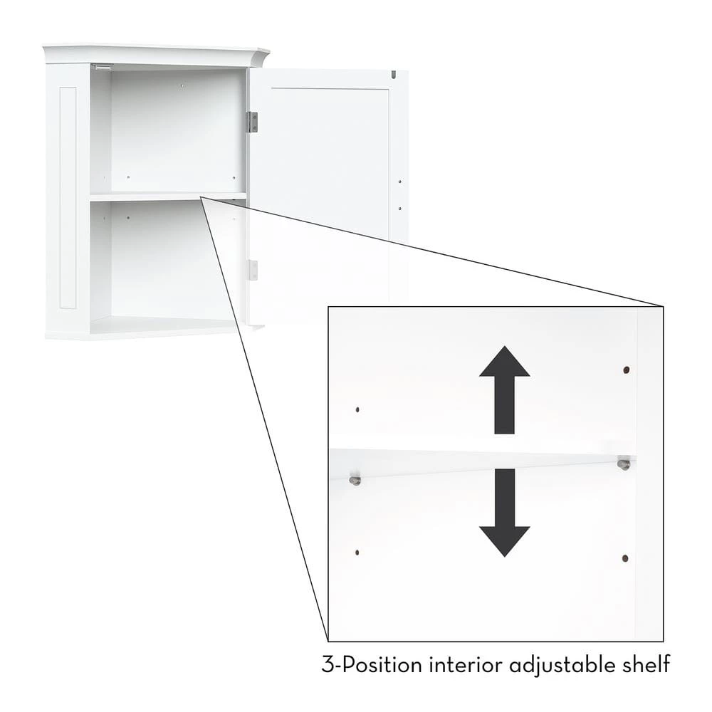 - Features one interior adjustable shelf, perfect for storing extra toiletries such as toilet paper, wash cloths, soaps and more
