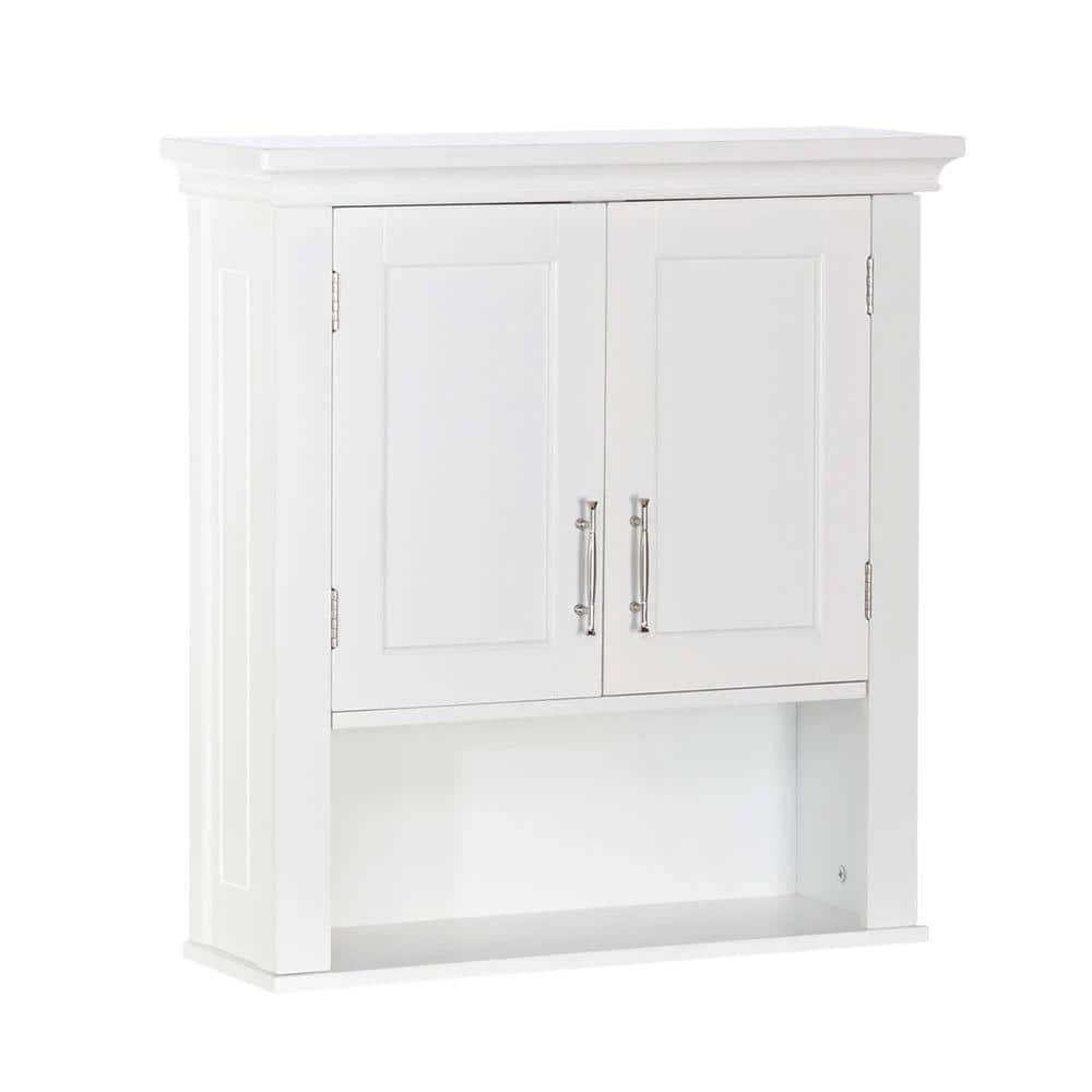 Classic Somerset design from RiverRidge Home in a white finish with detailed inset door and side panels. Coved design top and handles with a two tone satin/mirror finish. Bottom shelf is fixed while the inner shelf is adjustable. Open shelf area under door. Easy to assemble. Look for other great Somerset bath items to complete your ensemble.