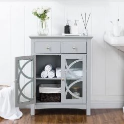 Glitzhome 20 in. W x 7 in. D x 24.25 in H Wall Cabinet with Double Doors in Gray