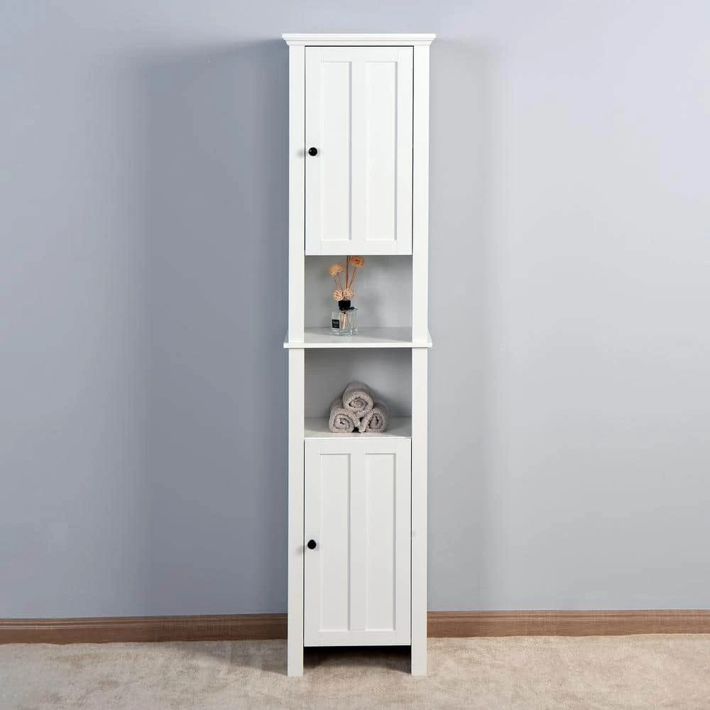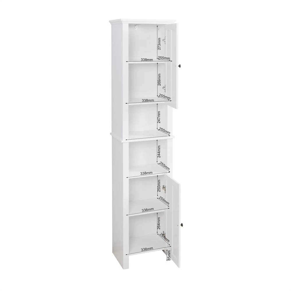 Bathroom floor storage is the perfect solution for keeping your bathroom tidy. With 1 adjustable shelf, and 6 shelves for all your storage needs. Quality materials withstand the humidity of your bathroom and prevent moisture, and the enclosed storage keeps your belongings away from dust. Convenient storage for towels, linens and other toiletries in a compact space. Multi-use in living room, bedroom, kitchen, bathroom, etc.
