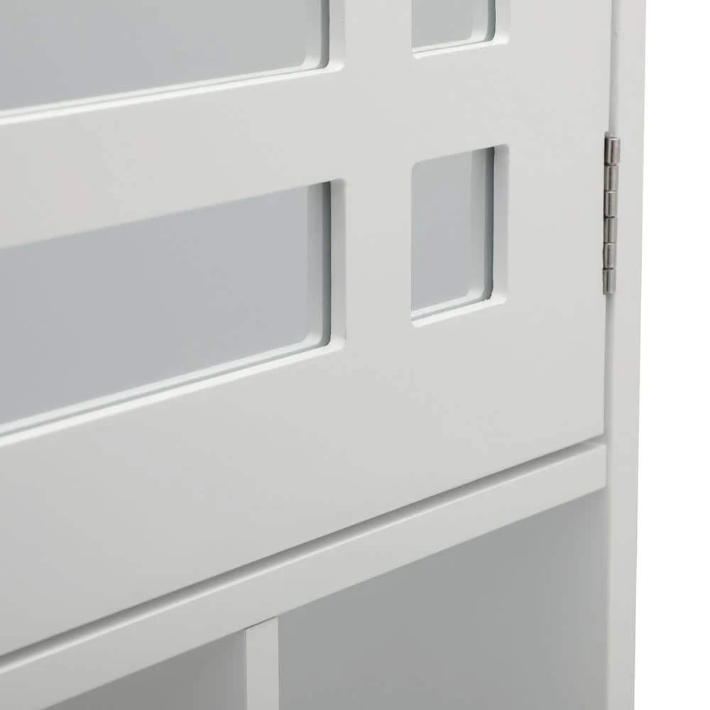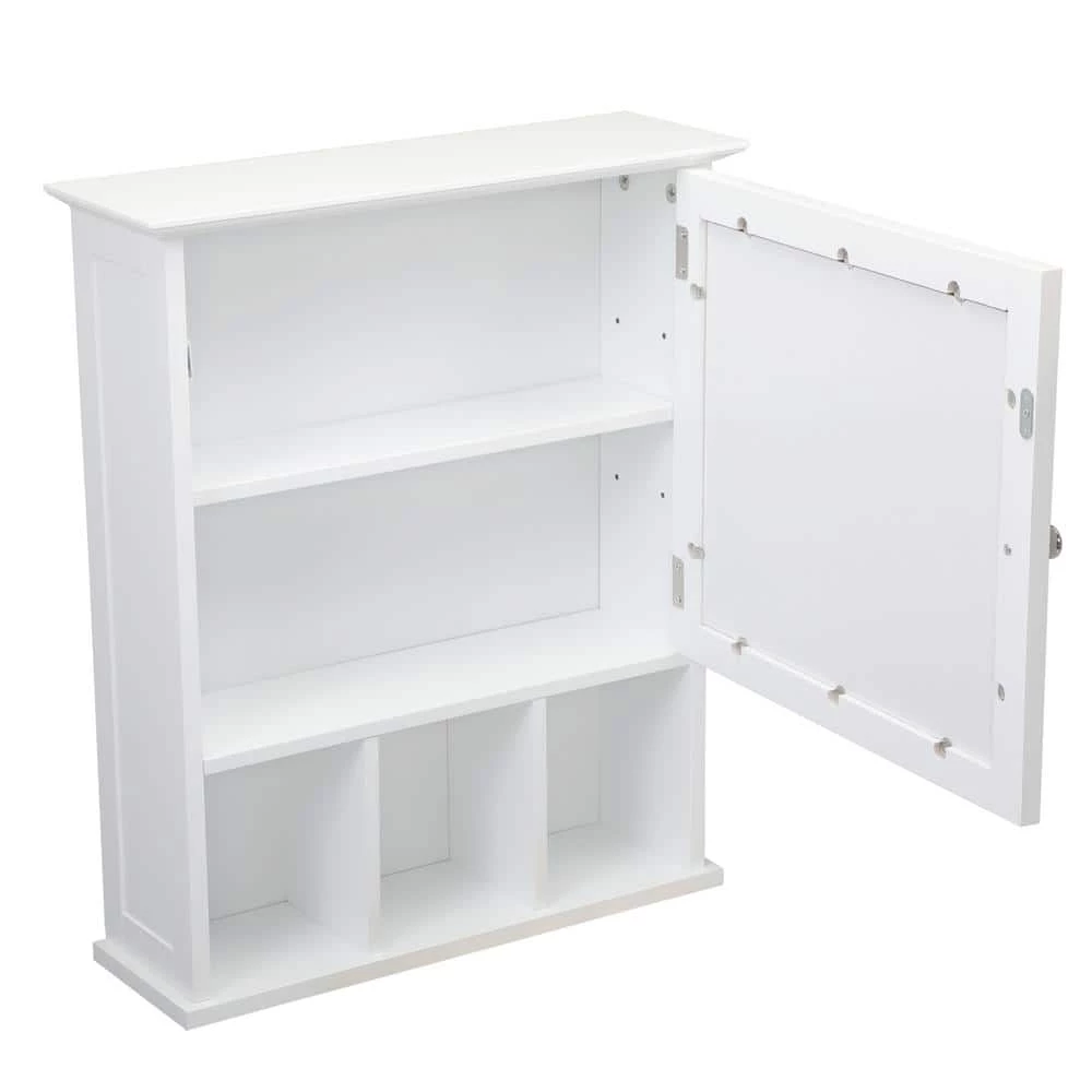 Simply attached to the wall to turn your empty wall in your home into a practical space, providing extra storage without taking up valuable floor space. Exquisite mirror adds a bright and modern atmosphere to your bathroom. Simple lines and elegant appearance in whites compatible with any decor. The shelf has 3 adjustable positions to fit items with different heights, which satisfying your needs to store large objects with loading capacity of 44 lbs. The mirrored cabinet comes with an upper storage cabinet and 3classification compartments, effectively keeping your messy bathroom organized. The High-quality MDF with selected painting withstands the humidity of the bathroom and prevents moisture.