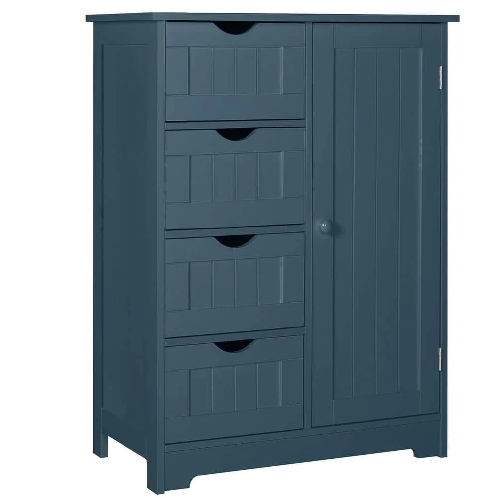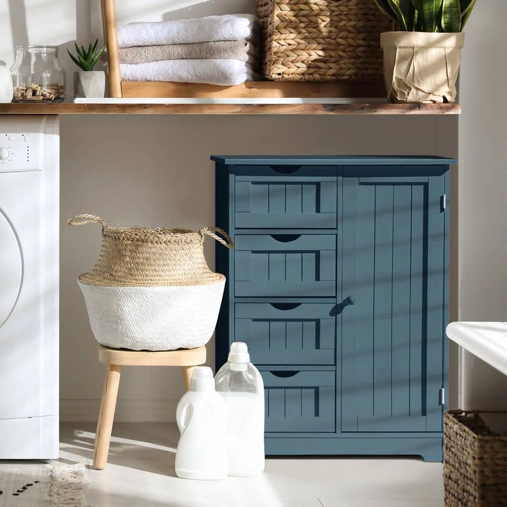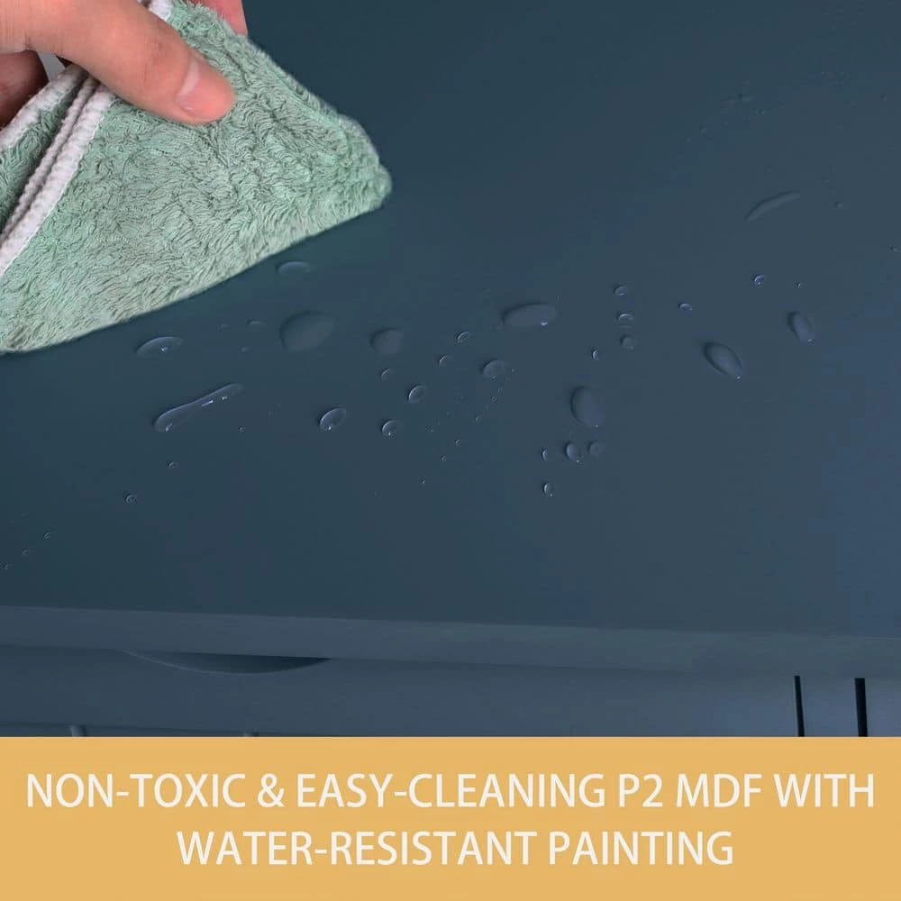 Blue furniture is particularly popular in bathrooms as it gives the room a peaceful touch. Most important is that the bathroom furniture should offer plenty of storage space. Our cabinet features all requirements for bathroom storage. This storage unit features 4 drawers and a half cabinet with an adjustable shelf, which can nearly store all bathroom necessities. And the arched drawer opening prevents injuries when opening and closing. In addition, the water-resistant white paint finish is easy to clean. If not used in your bathroom, can work great in your bedroom or living room as a gray accent piece.