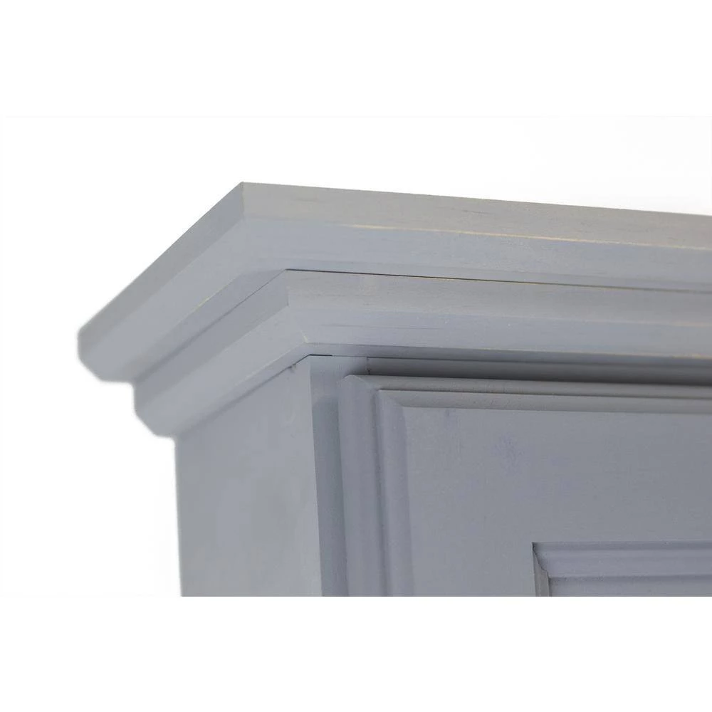 - Mounts on the wall with small steel brackets inside the top and bottom of the cabinet for an easy installation