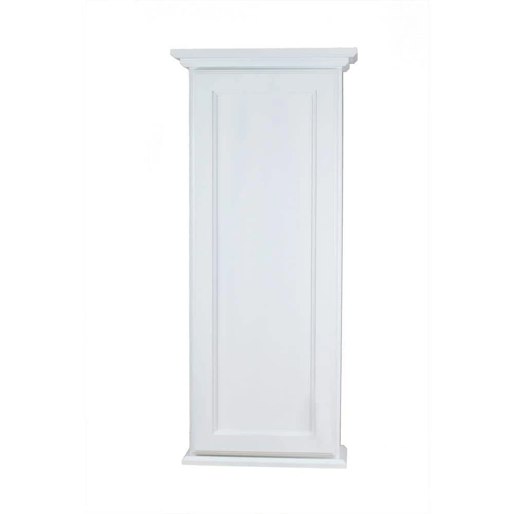 Mounts on the wall with steel mounting brackets inside for an easy installation. There is no need to worry about where the studs are in the wall with two mounting methods. Five fully adjustable glass shelves slide into our patented shelf supports so they don’t tip or rock. inset panel door sits on concealed hinges with a soft close feature, door is reversible so you can mount it to open in either direction. Perfect as a medicine cabinet, spice cabinet, or storage cabinet anywhere. Overall measurements are 49.5 in. H x 15.5 in. W x 4.25 in. D Overall. You’ll have nearly 3.5 in. of depth inside the cabinet. White enamel finish. Solid pine cabinet box with solid maple door. Proudly made in Sarasota, FL.